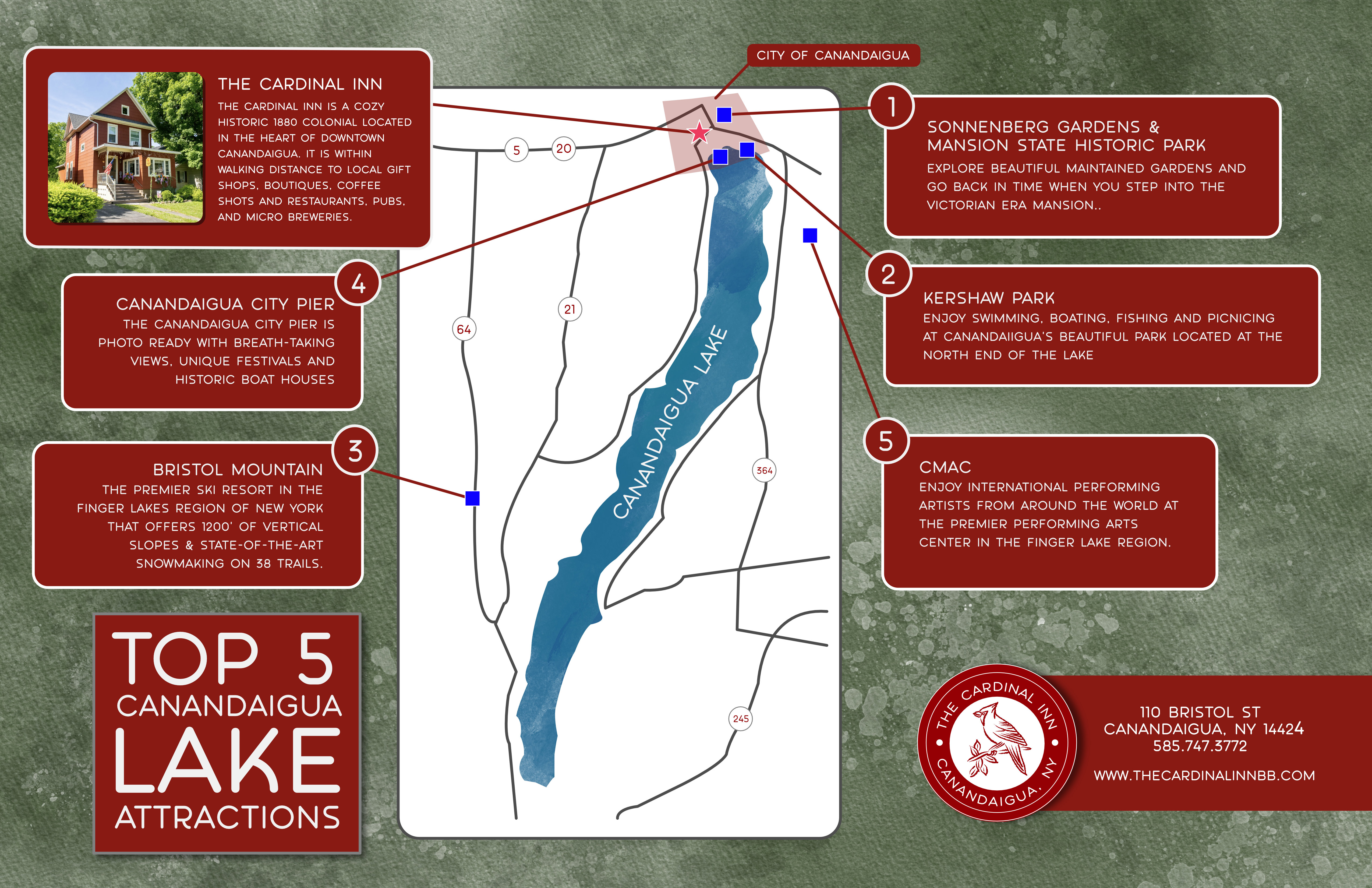 YOU ARE IN FOR A FUN FILLED GETAWAY WHEN YOU VISIT CANANDAIGUA, NY. THERE ARE SO MANY AMAZING ATTRACTIONS TO EXPLORE AND DELICIOUS FOOD AND DRINK TO TRY!